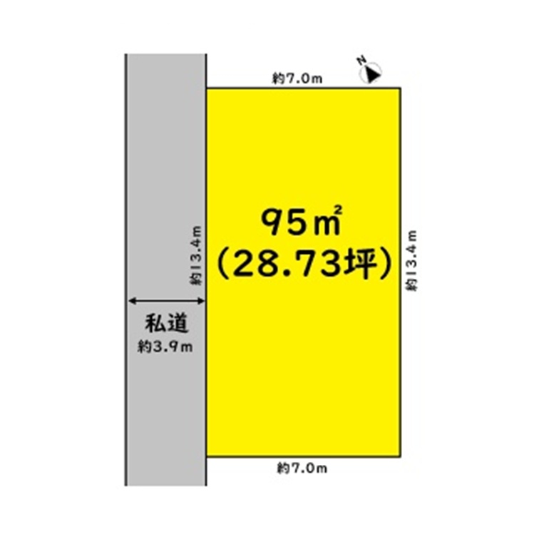 | 接道 | 北西側約3.9m私道に約13.4m接道 |