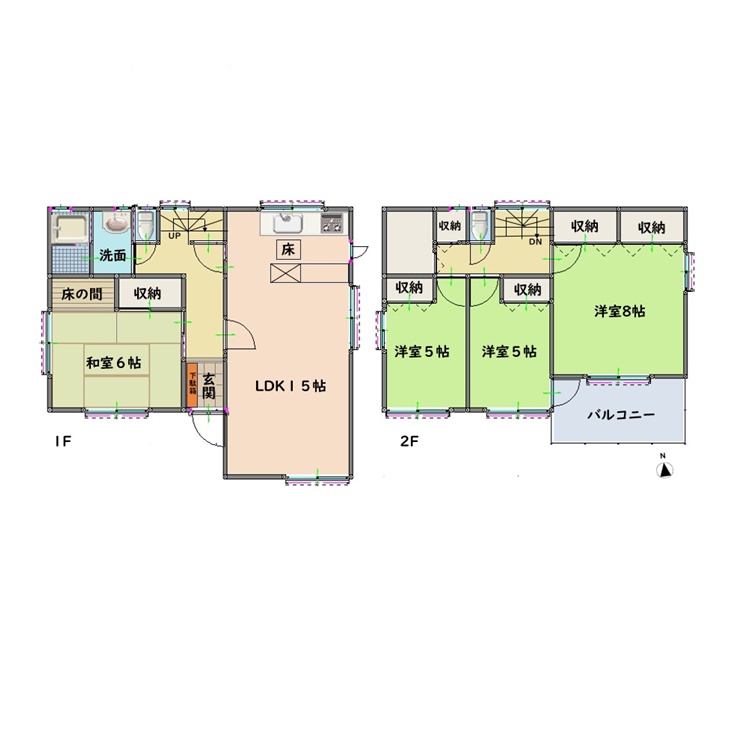 建物面積 1階:62.37㎡ 2階:52.97㎡