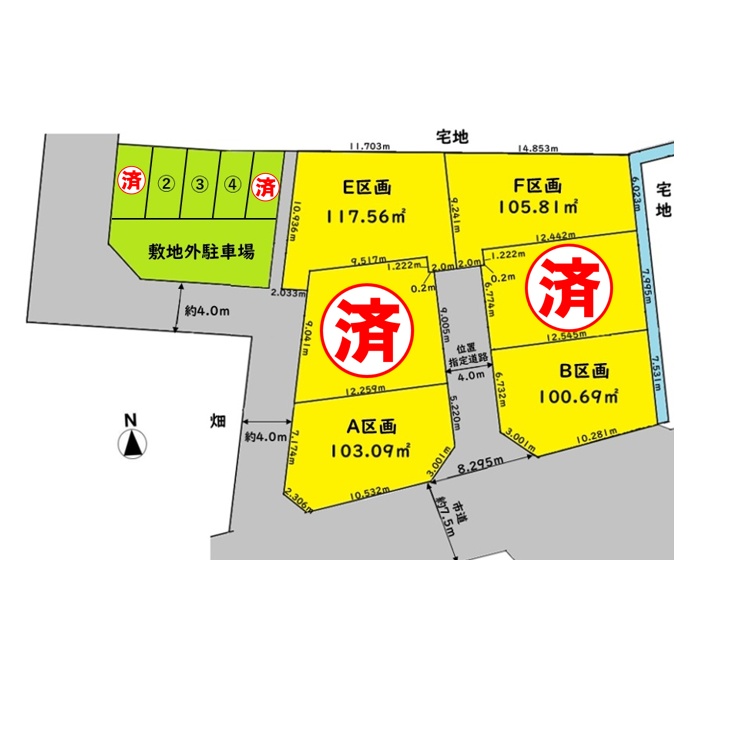 ※敷地外専用駐車場5台分有(飛地)E・F区画は1台ずつ確定。